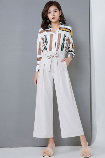 07 条纹雪纺阔腿裤