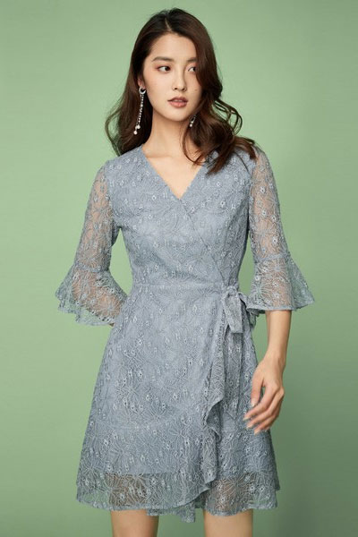 10 轻盈的蕾丝做成围裹裙,还挺少见的。加上荷叶边,仙气又少女。低调的灰蓝色,优雅依旧。轻轻围裹,侧边打结,曲线曼妙,长腿若隐若现,风情万种。