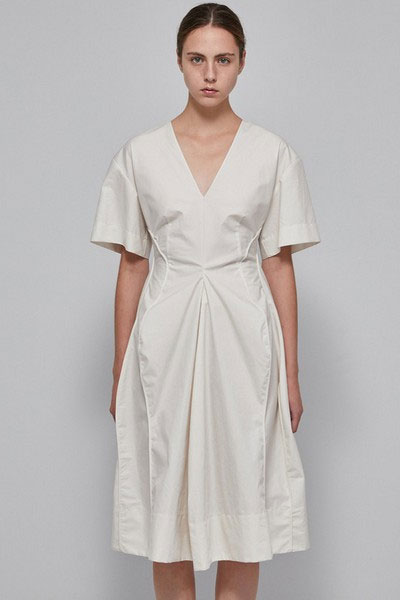 懒得搭配的时候,一条V领连衣裙加一双小白鞋,清爽出门,不会出错。