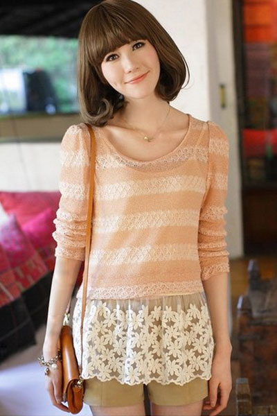 这件镂空小罩衫刚好到腰线位置,里面配一件蕾丝边的小背心,层次感就出来了。嫩嫩的冰淇淋色,穿上显白又健康,自然就显得年轻。