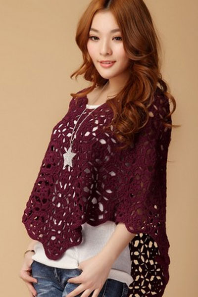 秋冬的斗篷长到屁股,春夏的小斗篷就短多了。前短后长的设计很特别,简单配个背心和牛仔裤就很好看。风一吹,波浪纹的下摆飘起来,很灵动。