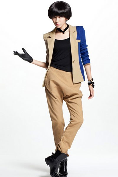 04 卡其拼宝蓝小西装