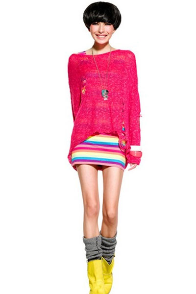 03 彩虹出现——彩色条纹针织裙