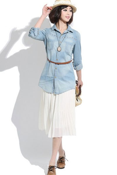 01 雨后的天空——浅蓝色衬衫裙