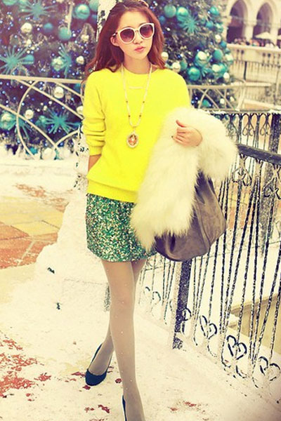 4.蝴蝶结越大,越能平衡腿粗——大装饰物能转移视线,配粗跟效果更好。