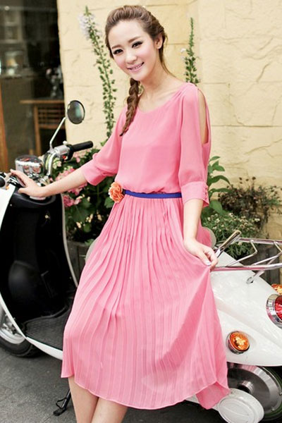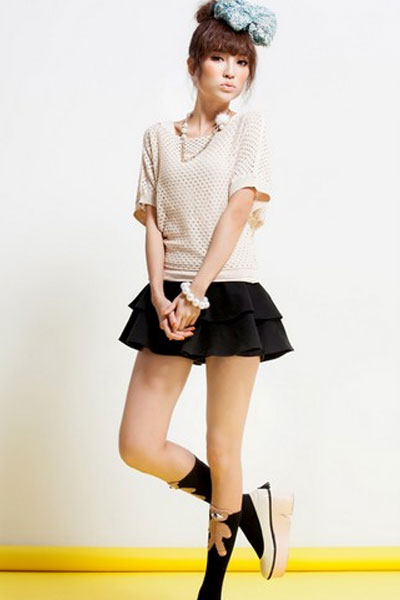 04 肩部镂空百褶裙