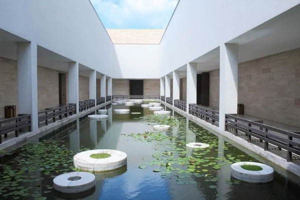 博物院的建筑本身就是一件艺术品,由英国设计师操刀设计,是座以“一把玉锥散落地面”为灵感的当代建筑。博物院内部共有发现求真、良渚古国、良渚文明三个展厅,其间穿插着三个天井式的露天庭院,以良渚文化的代表元素为装饰。穿梭在这个建筑空间内已然是一种享受。
