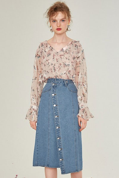 【刚柔并具:牛仔+纽扣/绑带/开叉/荷叶边】