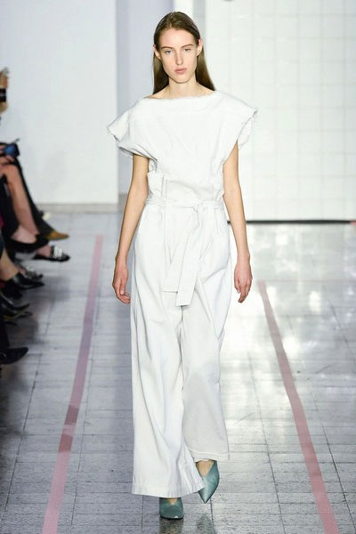 一身同色最简单,也最显高。白色纸袋裤配白色上衣,清爽又高级。裤腰那里有点褶皱和系带,腰身自然就出来了。从头到脚一个色,视觉上拉长身高,小个子也能穿出修长感。