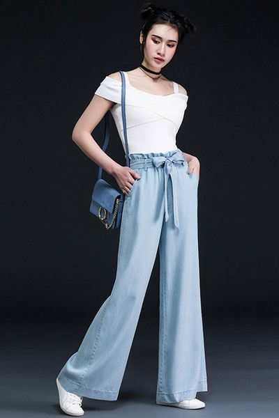 05 褶皱松紧腰牛仔阔腿裤