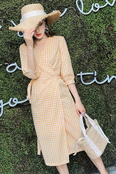 裹身裙是经典女神裙,性感又风情。维希格纹配上围裹,清新又大气。配一双尖头平底鞋,不费力的时髦。