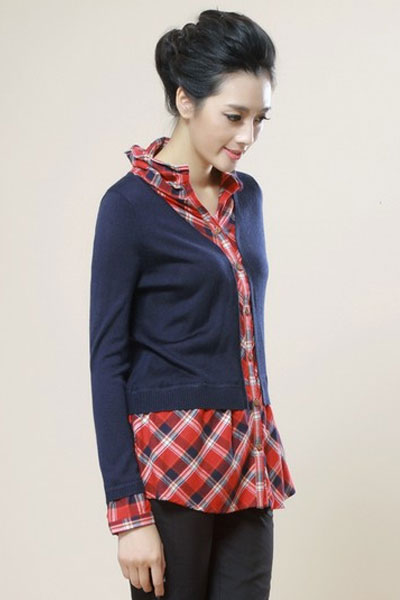 经典大气的款式,格纹和配色都很耐看。假两件的设计省了搭配的麻烦——短款针织下面连着一件中长款衬衫,腰线自然就提上去了,也不用担心弯腰时走光。