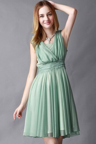 性感也可以很清爽。浅盈盈的绿,像薄荷冰淇淋,看着就凉快。V领和无袖恰到好处,像希腊女神一样典雅,妩媚但不张扬。穿上它,别人会觉得你“很舒服的好看”。